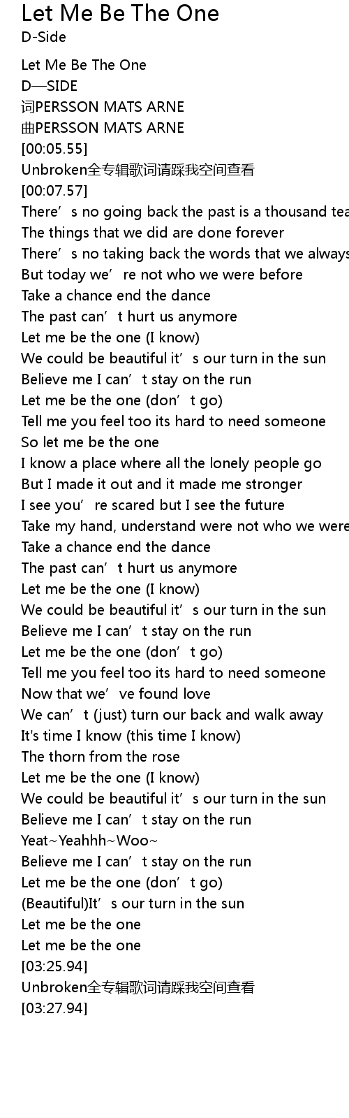 | [00:01.51] | Let Me Be The One |