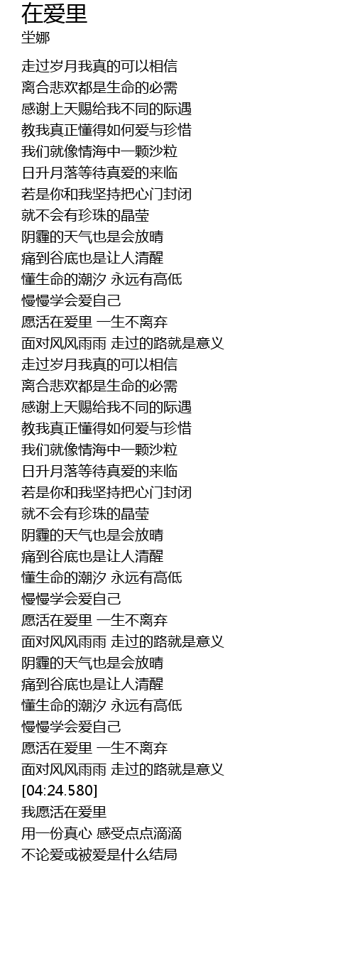 | [04:28.510] | 我愿活在爱里 |