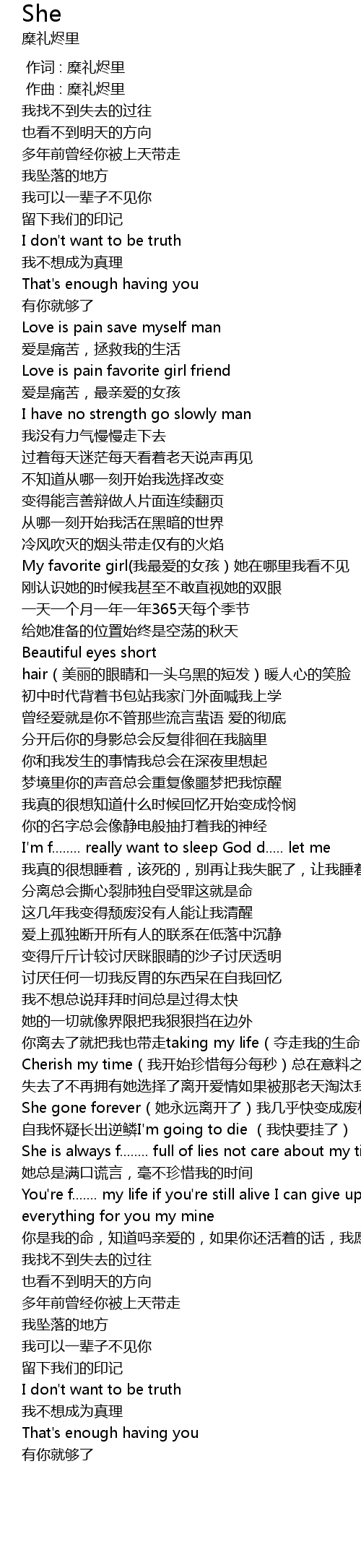 | [00:00.000] | 作词 : 糜礼烬里 |