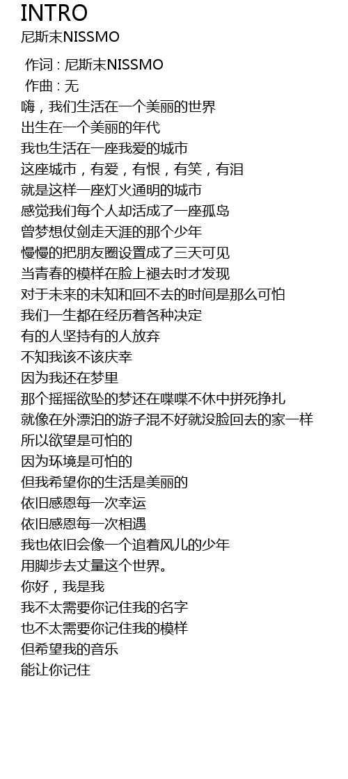 | [00:00.000] | 作词 : 尼斯末NISSMO |