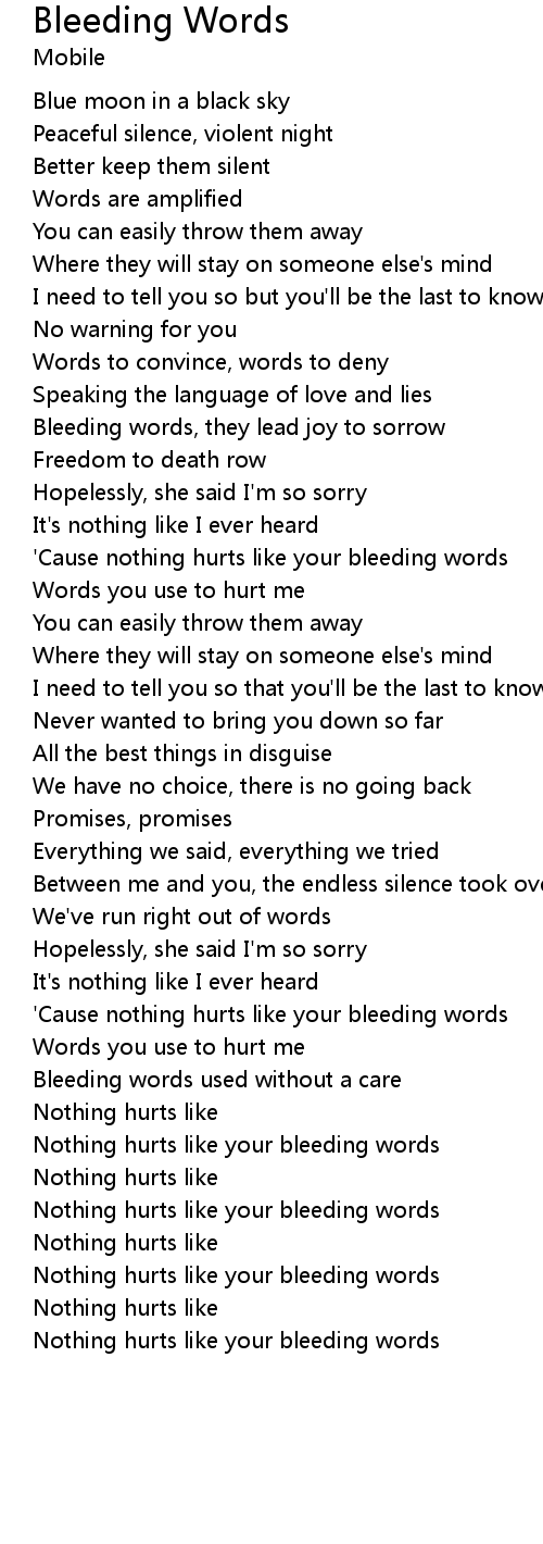'Cause nothing hurts like your bleeding words |