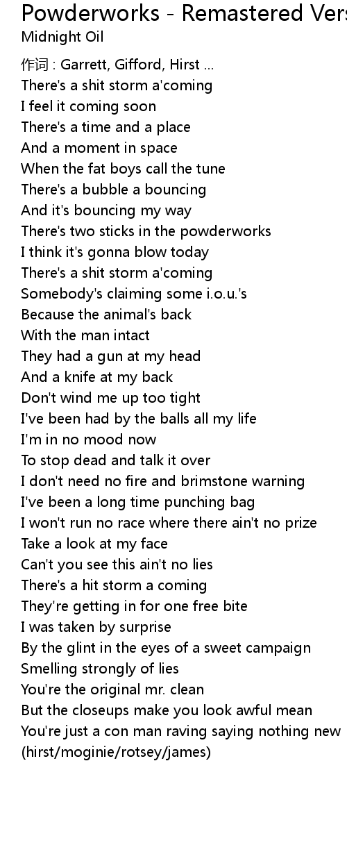 | 作词 : Garrett, Gifford, Hirst ... | |