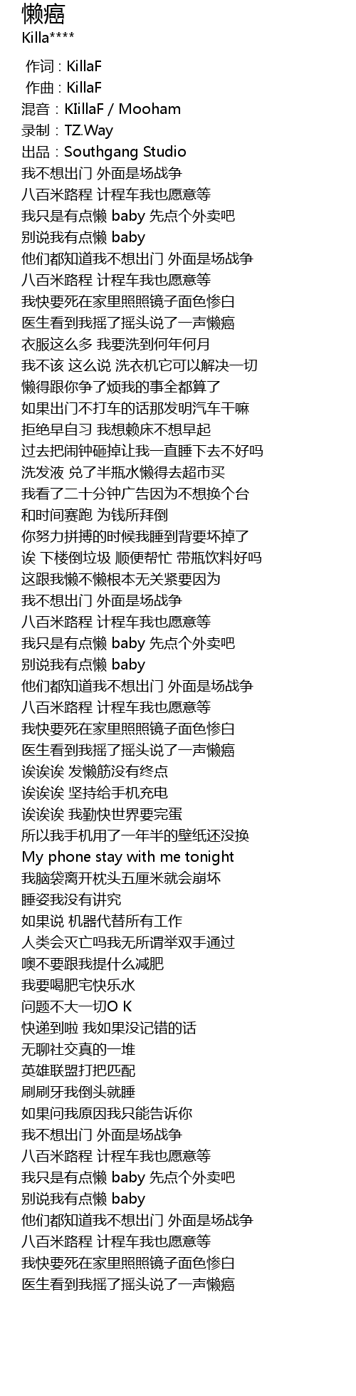 | [00:00.000] | 作词 : KillaF |