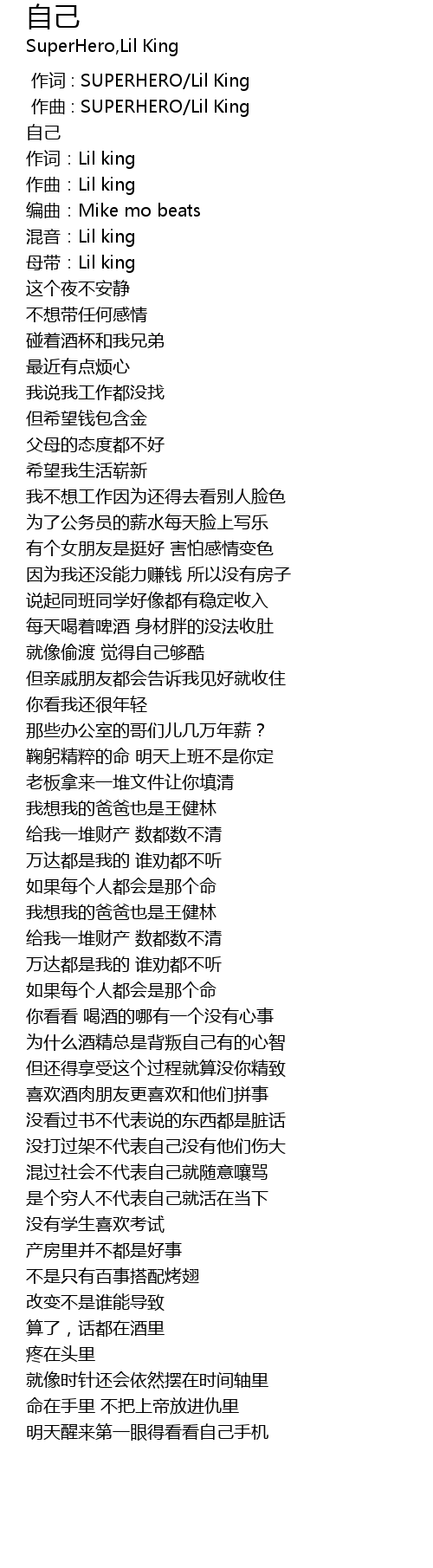 | [00:00.000] | 作词 : SUPERHERO/Lil King |