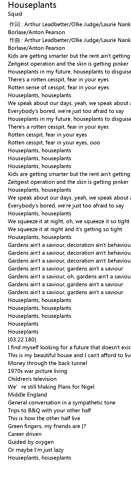 | [00:58.122] | Houseplants in my future, houseplants to disguise |