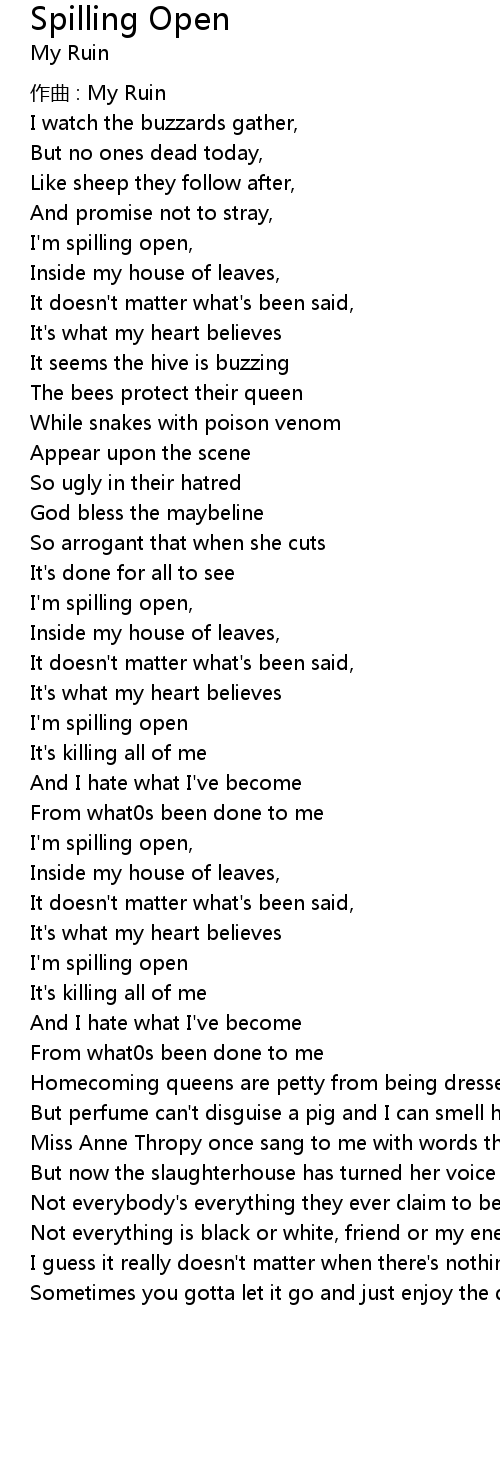 | 歌曲 | Spilling Open |