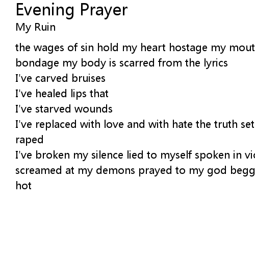 | the wages of sin hold my heart hostage my mouth is still cruel my skin is in bondage my body is scarred from the lyrics | |