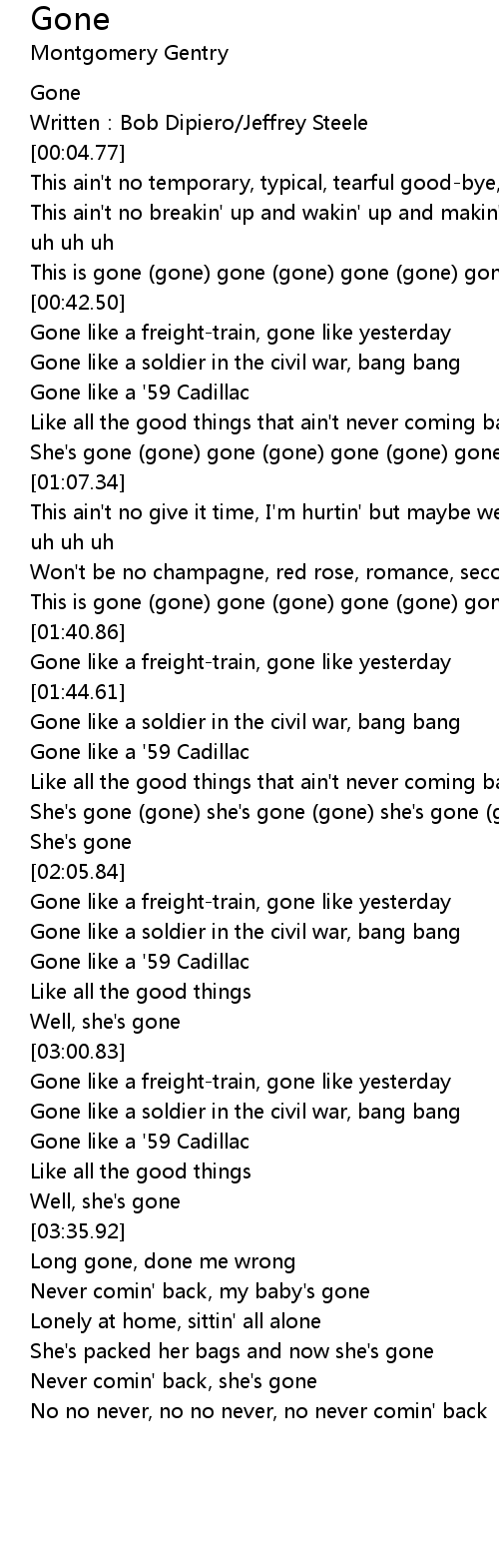 | [01:32.78] | This is gone gone gone gone gone gone gone |