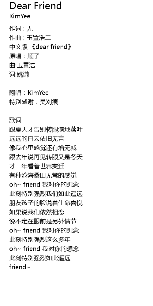 | oh friend wǒ duì nǐ de xiǎng niàn | |