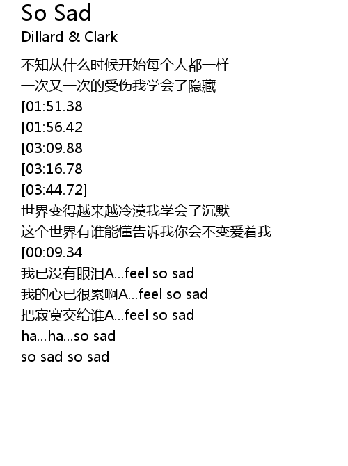 | [03:34.69][03:09.88][02:00.72][01:04.80] | 悲伤的你feel so sad so sad |