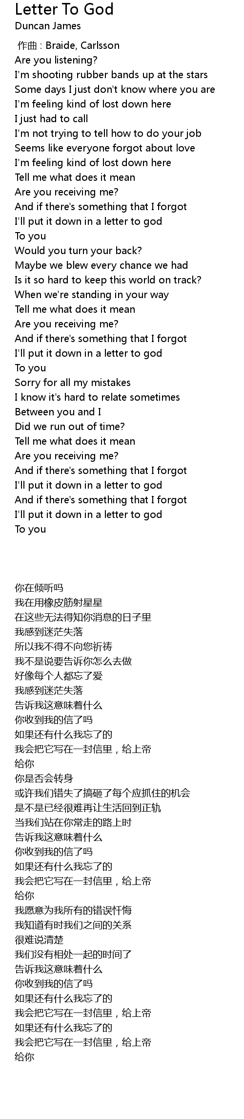 | [02:02.100] | 我会把它写在一封信里,给上帝 |
