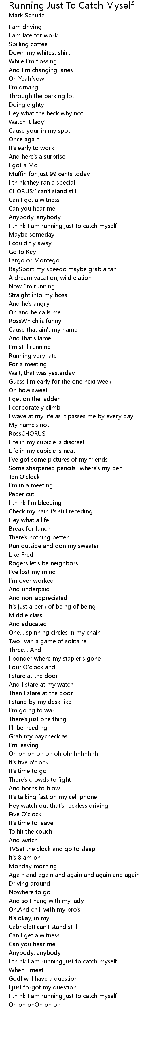 I think I am running just to catch myself |