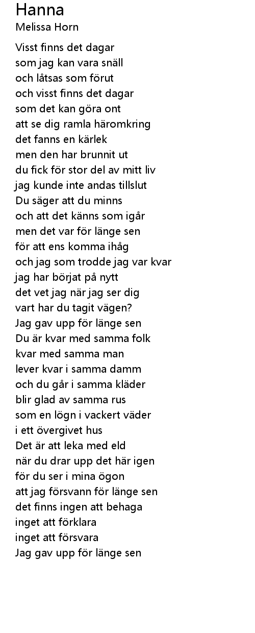 | Jag gav upp f r l nge sen | |