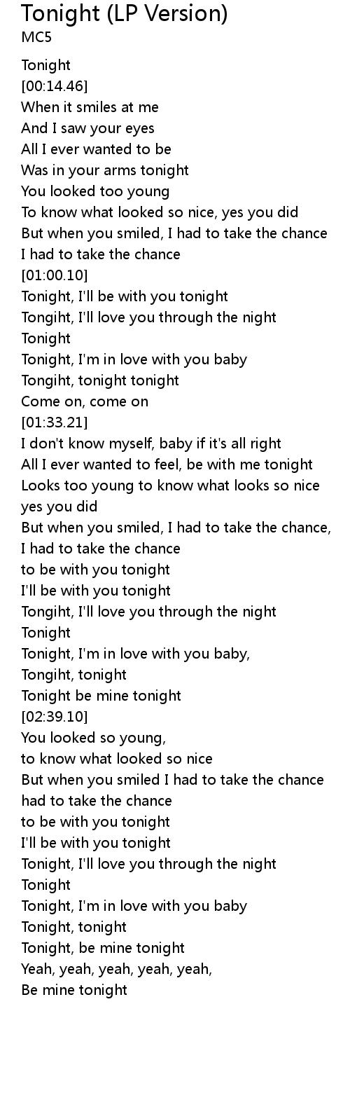 [02:31.75] Tongiht, tonight