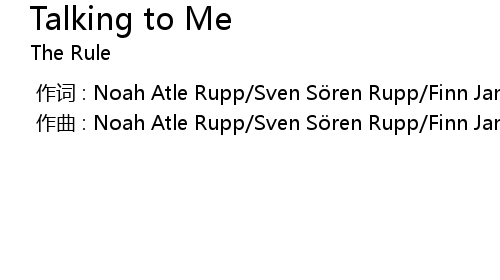 | [00:00.000] | 作词 : Noah Atle Rupp/Sven Sören Rupp/Finn Jan Rupp |
