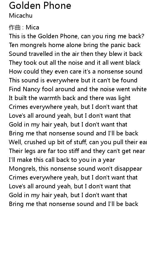 | Bring me that nonsense sound and I' ll be back |