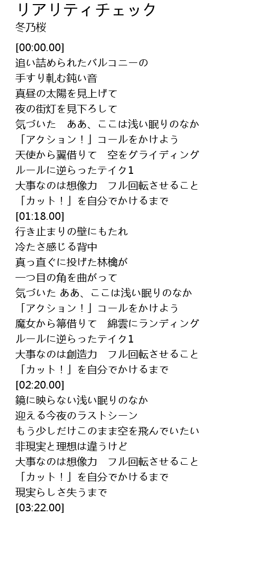 | [00:43.00] | 気づいた ああ、ここは浅い眠りのなか |