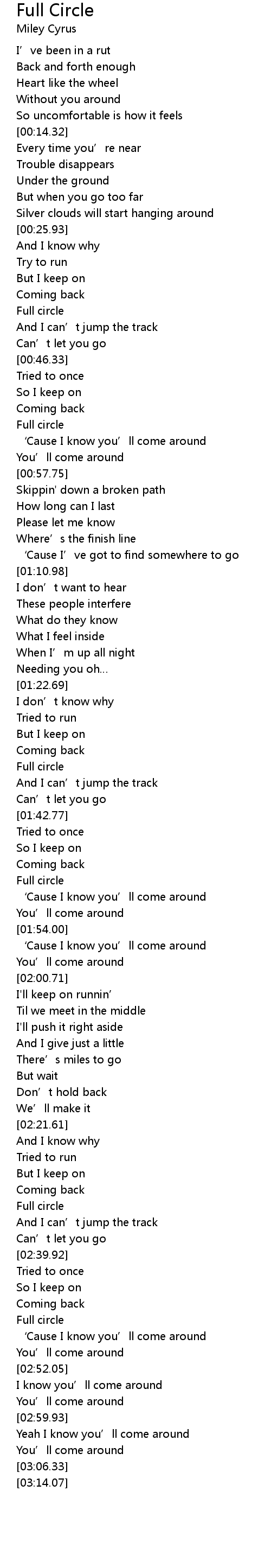 Full Circle 歌词