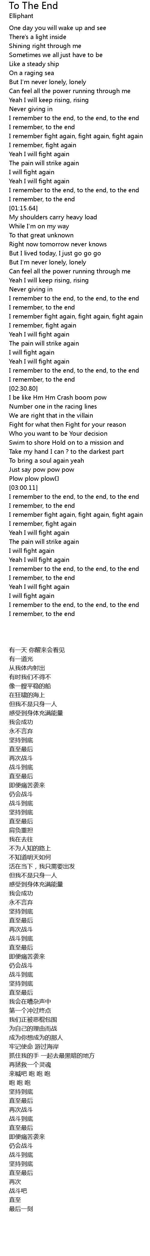 | [02:21.83] | I remember to the end, to the end, to the end |