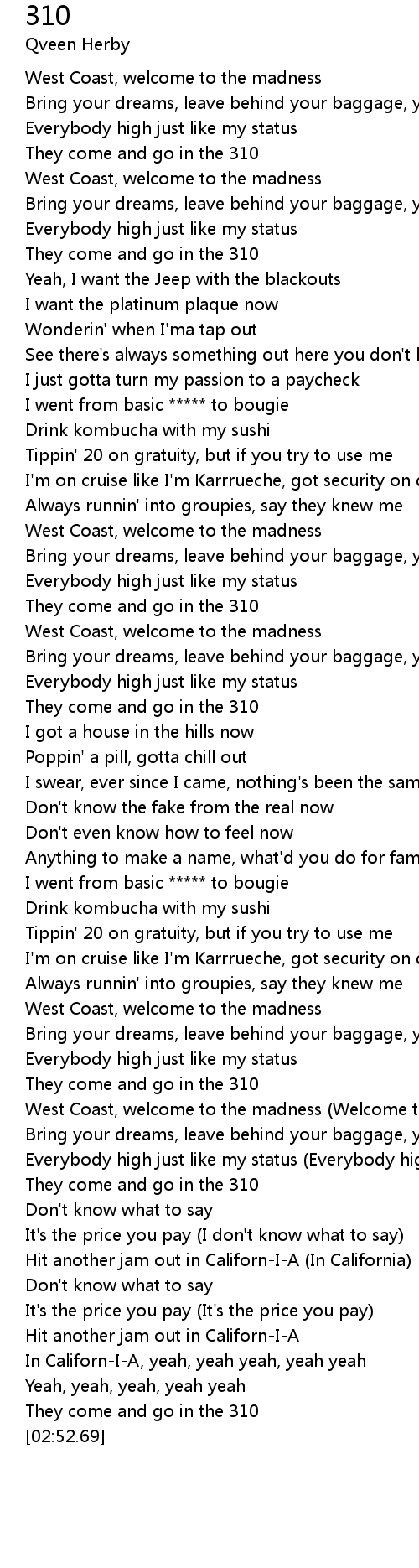 They come and go in the 310 |