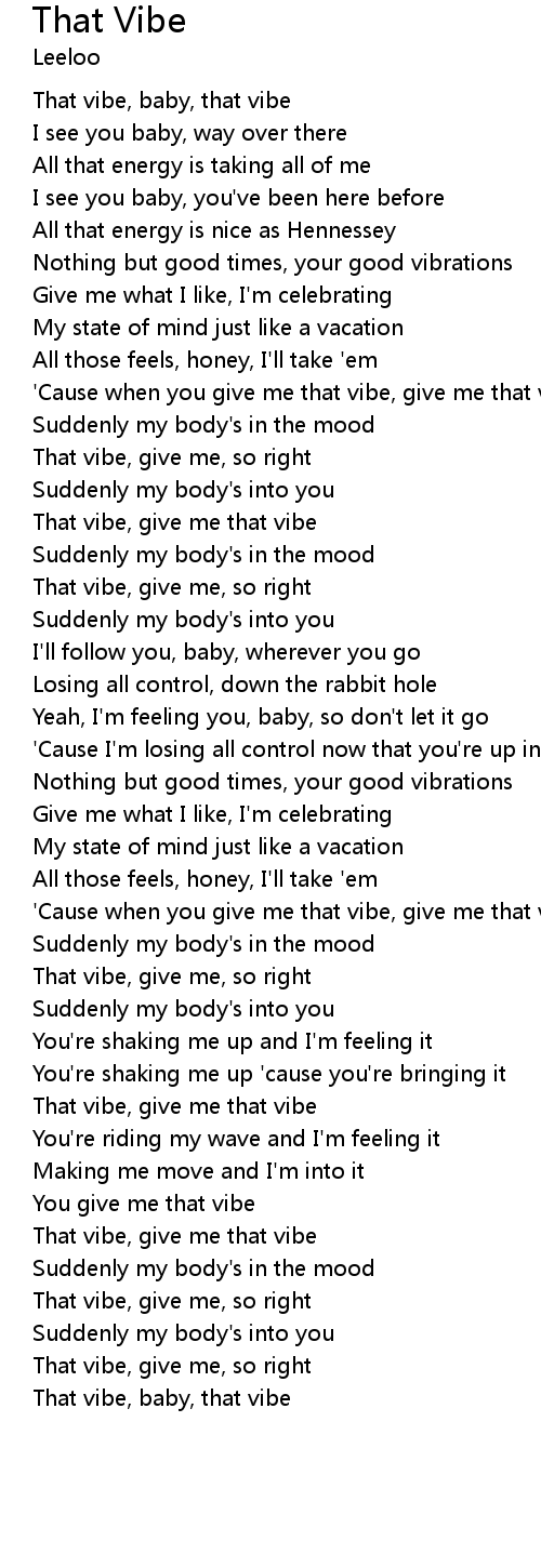 | [01:00.02] | That vibe, give me that vibe |