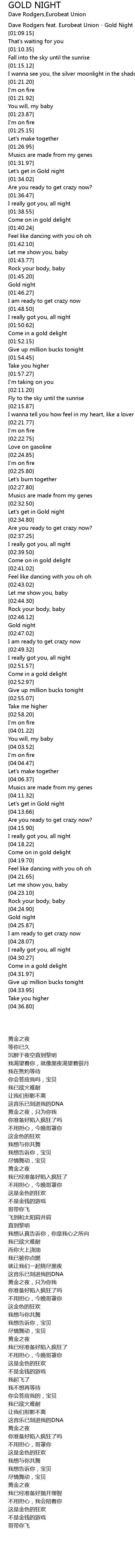 Dave Rodgers feat. Eurobeat Union - Gold Night |