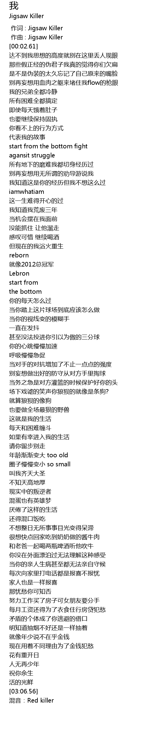 | [00:01.000] | 作曲 : Jigsaw Killer |