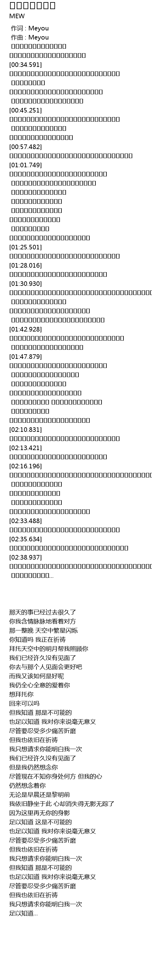 | [02:38.937] | 我只想请求你能明白我一次 |