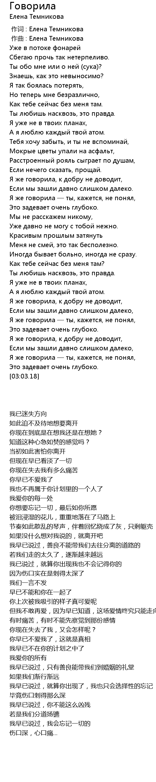 | [00:00.000] | 作词 : Елена Темникова |