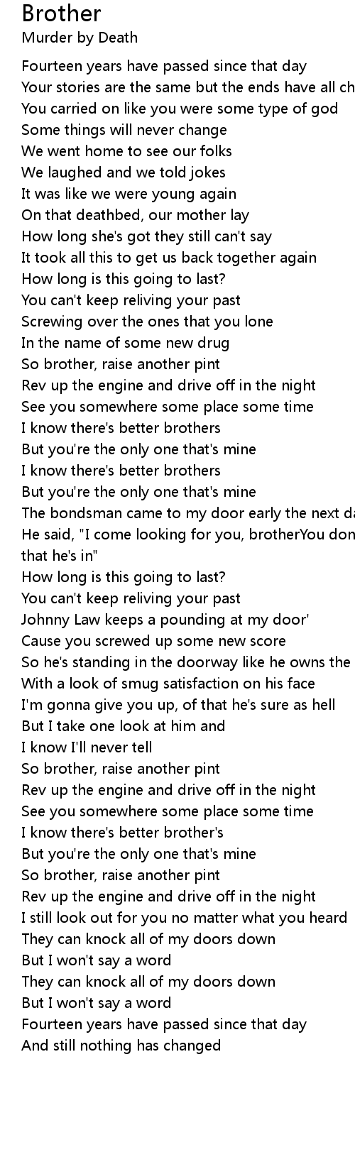 He said, "I come looking for you, brotherYou don't know what kind of trouble that he's in" |
