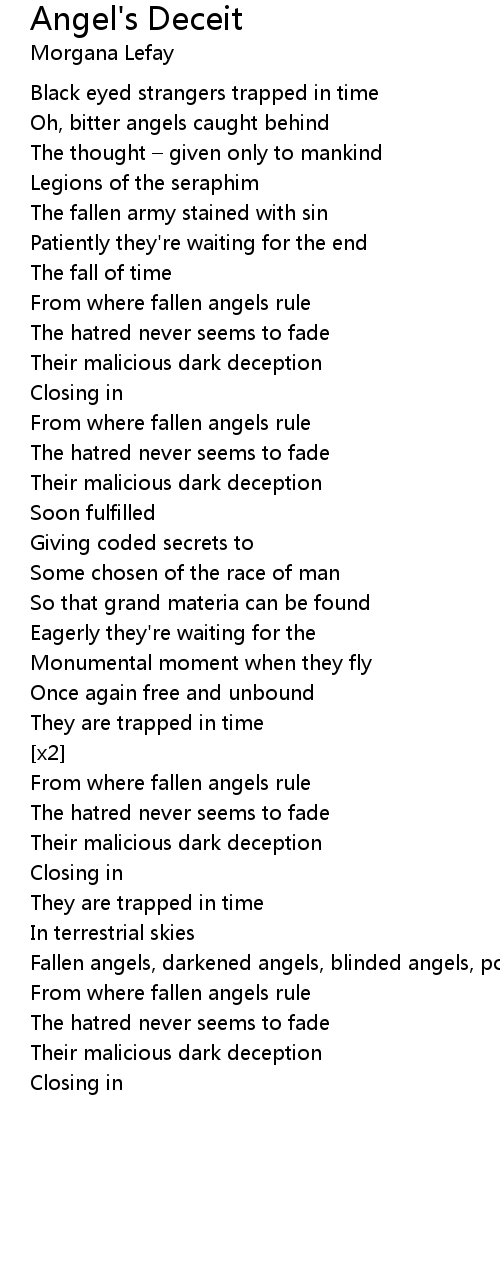 | Fallen angels, darkened angels, blinded angels, poisoned by their hate | |