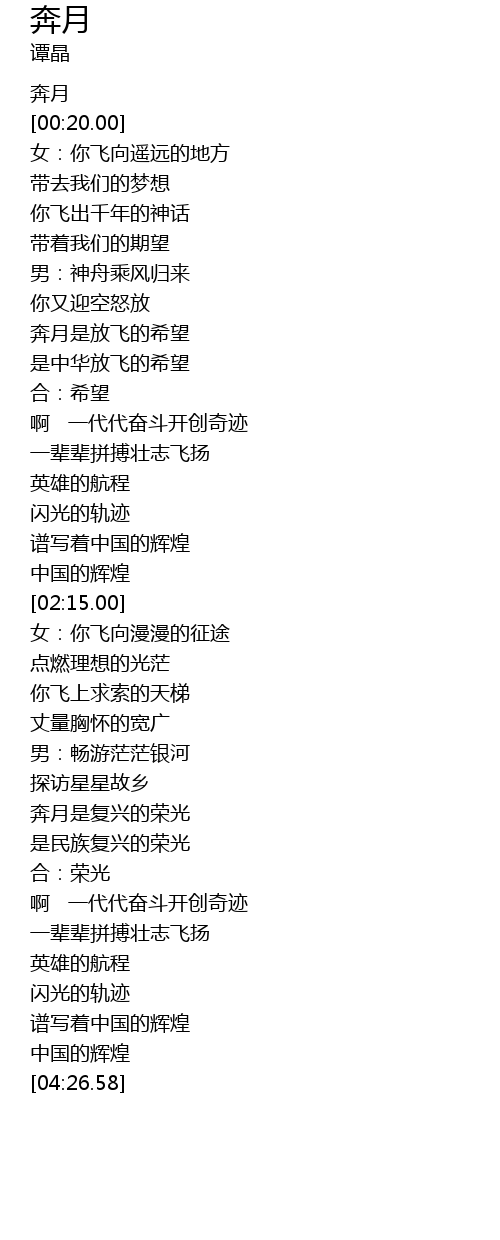 | [03:27.06] | 奔月是复兴的荣光 |