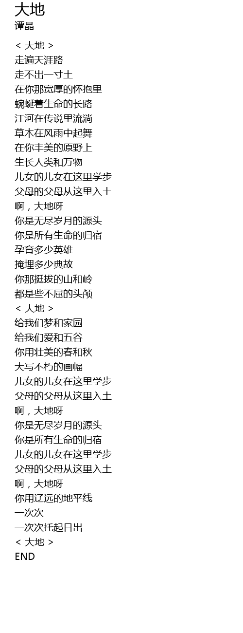 | [00:00.00] | < 大地 > |