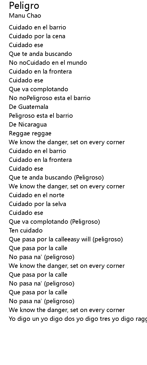 Peligro 歌词
