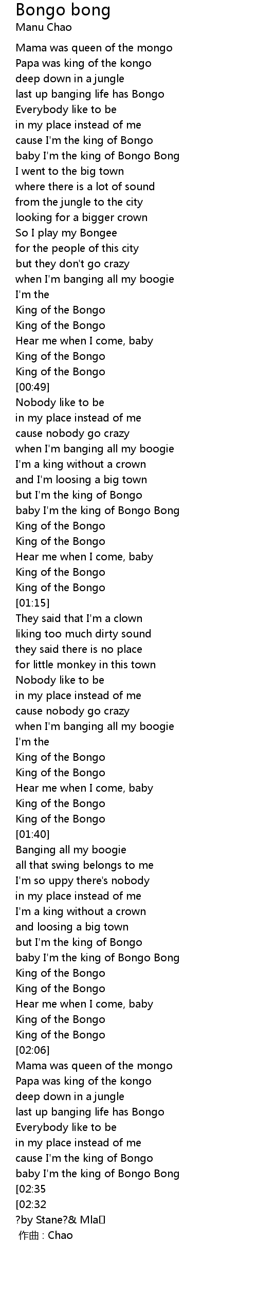 | [02:18] | cause I'm the king of Bongo |