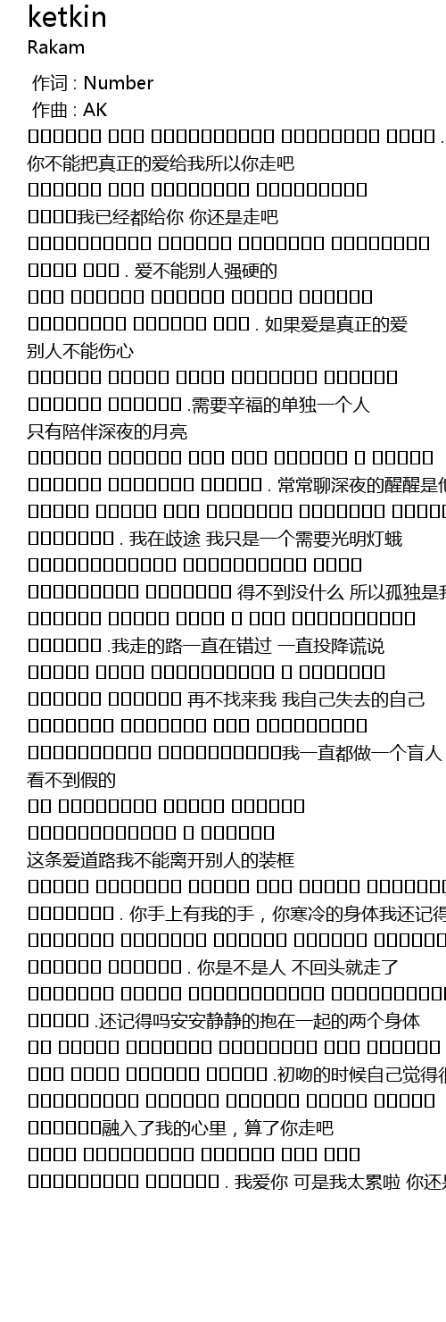 | [00:14.045] | كەتكىن سەن بېرەلمىسەڭ كۆڭلۈڭنى ماڭا . 你不能把真正的爱给我所以你走吧 |