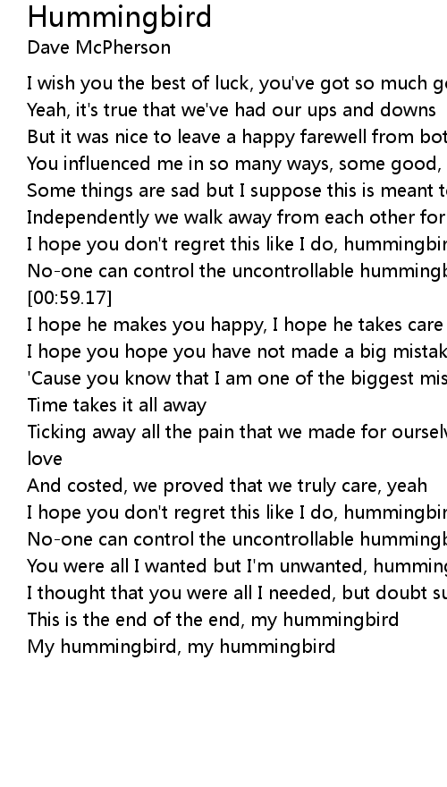 [01:56.23] You were all I wanted but I'm unwanted, hummingbird, hummingbird