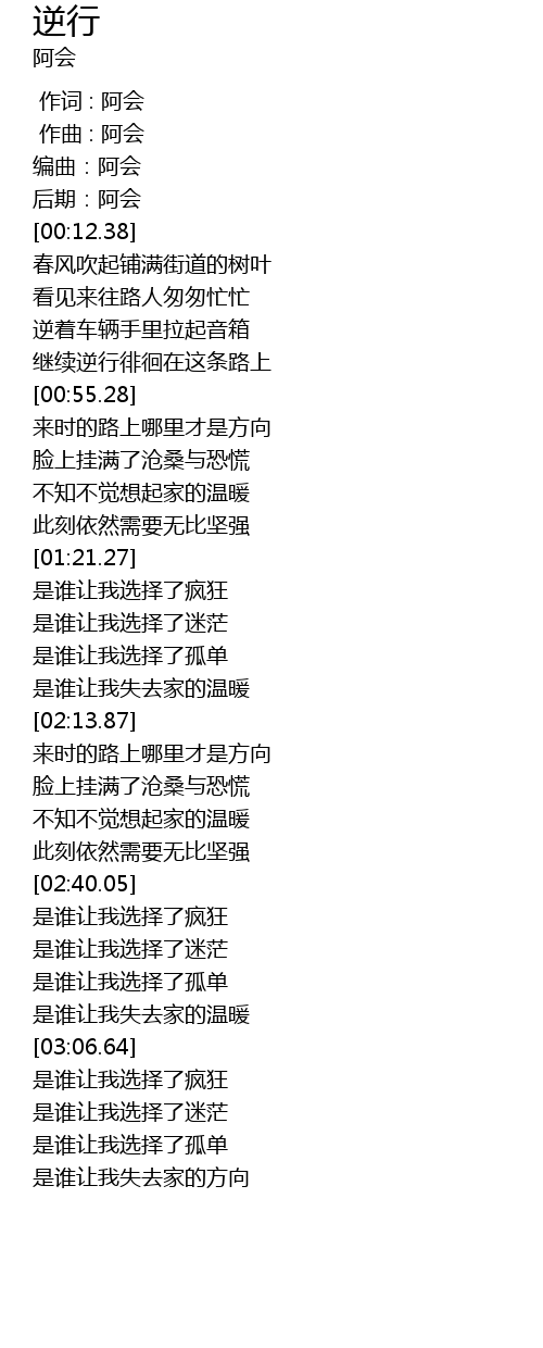 | [00:01.000] | 作曲 : 阿会 |