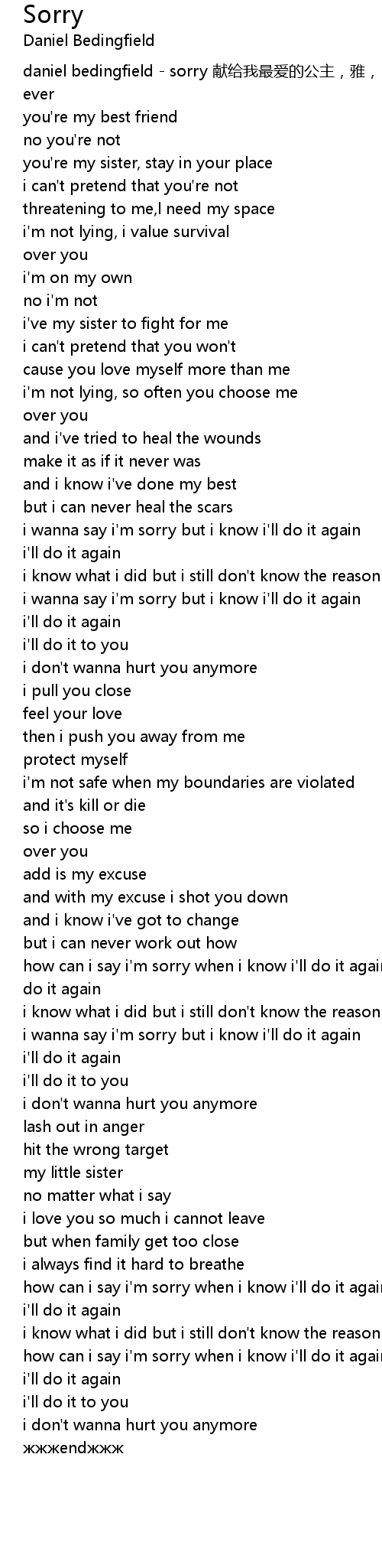 | [00:00.02] | daniel bedingfield sorry xiàn gěi wǒ zuì ài de gōng zhǔ, yǎ, love u for ever |