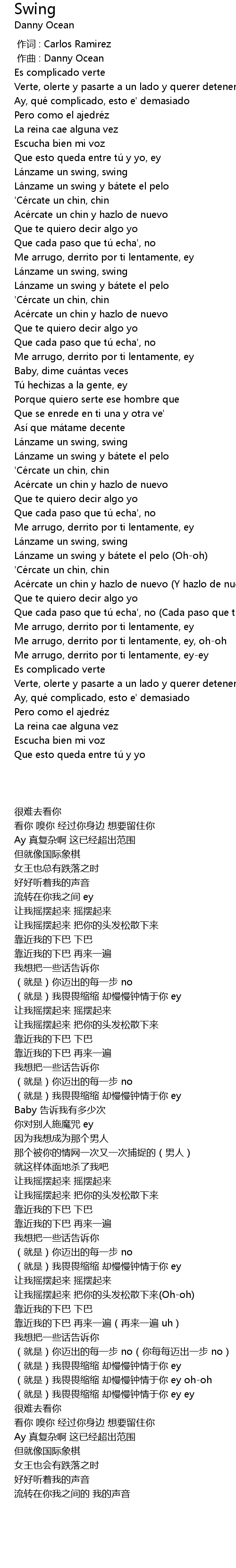 | [01:40.92] | Lánzame un swing y bátete el pelo (Oh-oh) |
