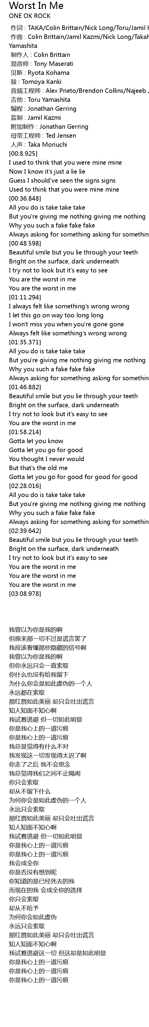 | [02:39.742] | Beautiful smile but you lie through your teeth |