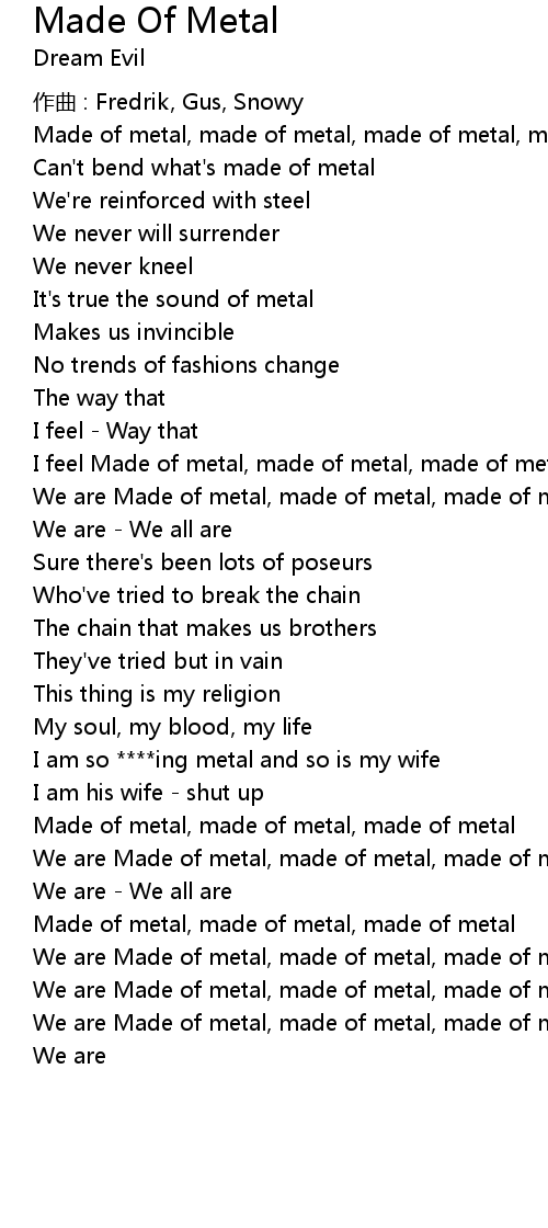 | We are Made of metal, made of metal, made of metal | |