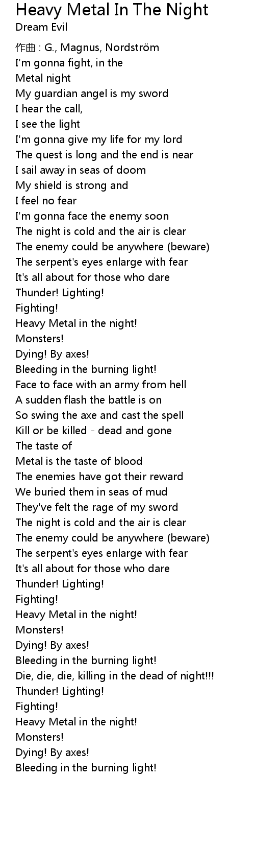 | 歌曲 | Heavy Metal In The Night |