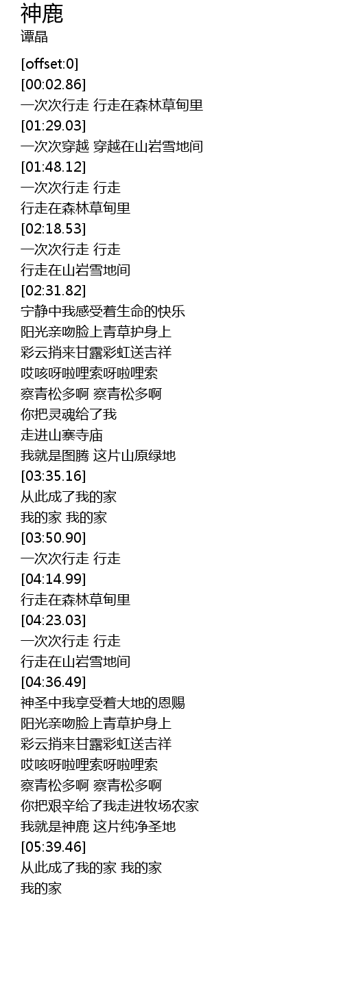 | [05:31.51] | 我就是神鹿 这片纯净圣地 |