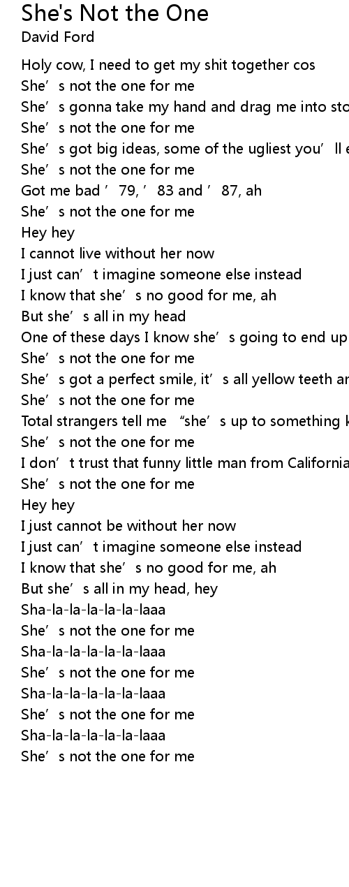 | 歌曲 | She's Not the One |
