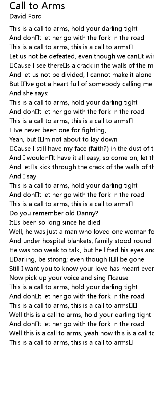 | Well this is a call to arms, yeah now this is a call to arms | |