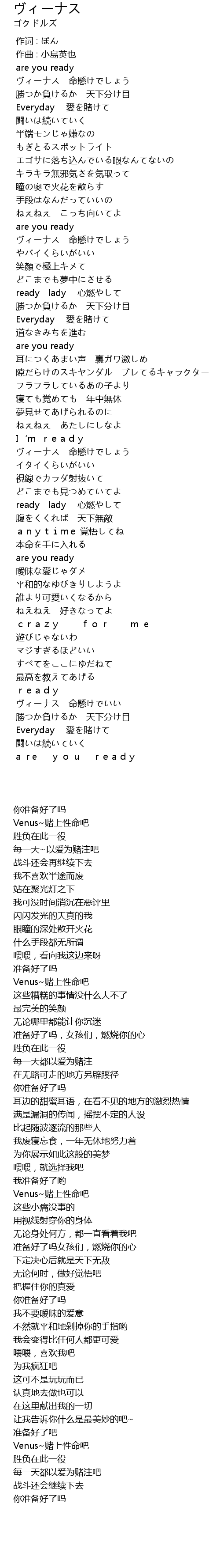 | [00:03.584] | Venus~赌上性命吧 |