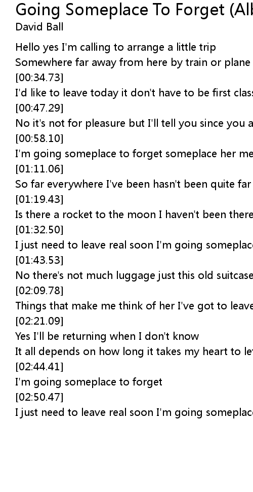 I'm going someplace to forget someplace her memory won't show up |