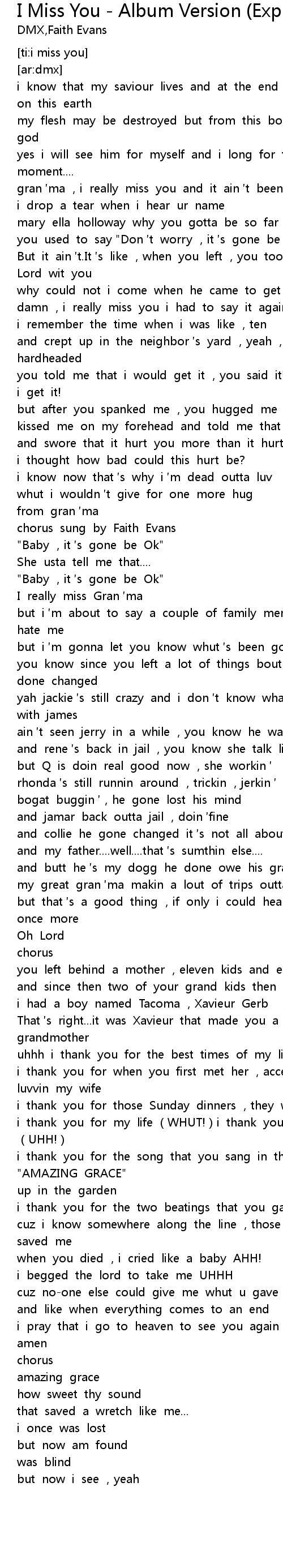 | [00:24.48] | gran ma , i really miss you and it ain t been the same |