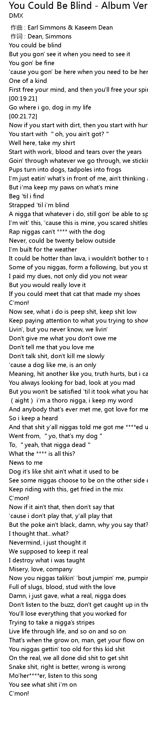 | [00:00.00] | zuo qu : Earl Simmons Kaseem Dean |